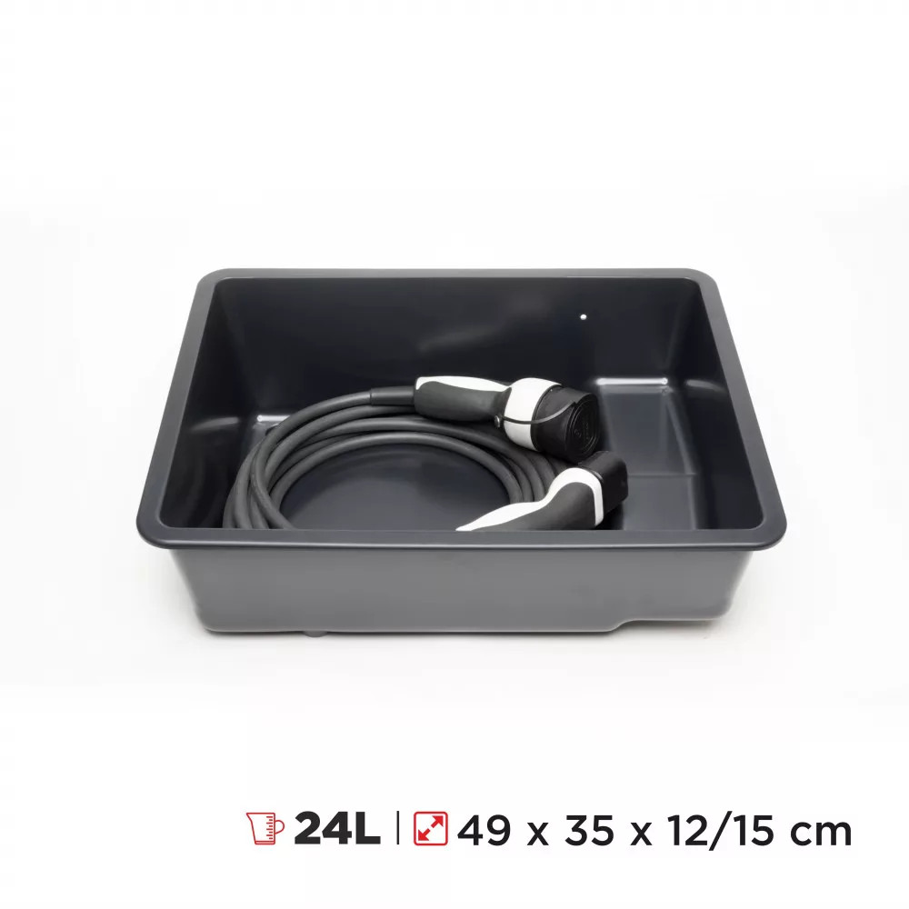 JÓL HASZNÁLHATÓ - Alkalmas töltőkábelek és egyéb autós kiegészítők tárolására. Jól kihasználható forma. Könnyen tisztítható. Védelmet nyújt a töltőkábel szennyeződései és a esetlegesen kiömlő folyadékok ellen.